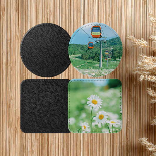 Customized coasters · Thickened waterproof leather material · Anti-slip and heat-insulating · Can be printed with LOGO/ pattern